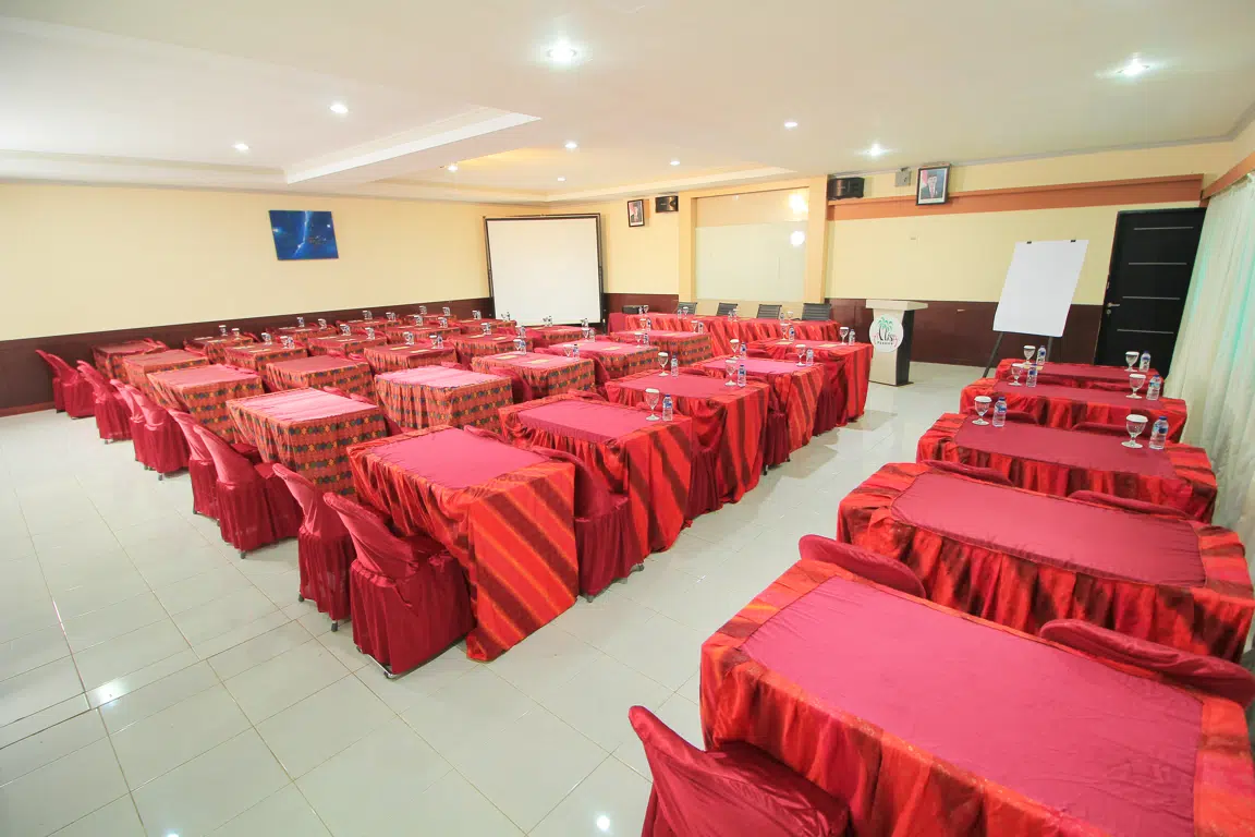 Luas ruangan ini adalah 27,42 m x 16,4 m yang dapat menampung kapasitas dengan ruang kelas yang terdiri dari 150 orang. Dengan layout berbentuk U 100 orang, dengan layout teater 200 orang. Ruang rapat ini terletak di lantai 2 gedung dengan AC, pengaturan ruang rapat, buku catatan dan pensil, sound system standar dan 2 mic, air minum kemasan, dan permen. Ruang meeting ini juga dapat digunakan sebagai tempat untuk acara pernikahan indoor, dan gathering indoor.